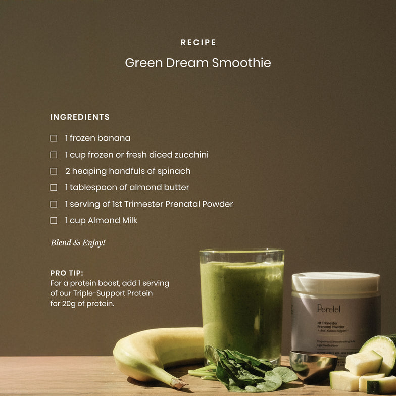 Made for those 1st trimester days when swallowing pills seems impossible. With a subtle hint of vanilla, our prenatal smoothie mix was designed to blend perfectly into a smoothie or milk of choice, cover your nutritional baseline needs and support baby's early development. Please note: This blend is not designed to fully replace a prenatal vitamin as it does not contain iron–but can be used as-need for those especially difficult days.