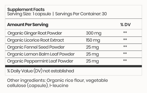 • Botanical blend of ginger, licorice, fennel, peppermint