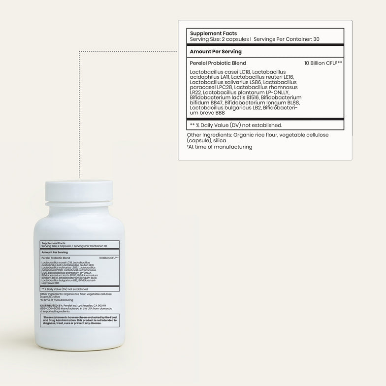 Good health starts with your gut, as research shows that probiotics are important for digestion, a healthy immune system and can even boost energy. Our Daily Probiotic is formulated with specific probiotics known to be helpful for gut health, vaginal support and other positive indicators for a healthy pregnancy. Designed to be taken daily before, during, and after pregnancy in conjunction with any monthly Perelel Pack.*