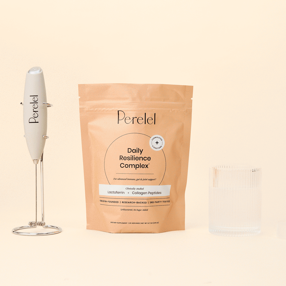 Perelel Daily Resilience Complex supplement package on a beige background