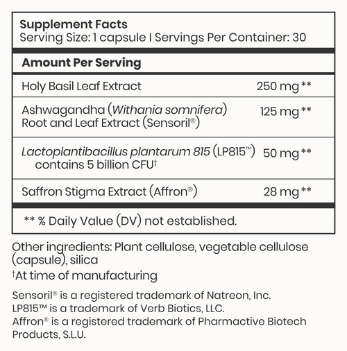 "Stress Support combines knowledge from both Eastern and Western cultures in providing a mix of adaptogens including ashwagandha, holy basil and most importantly saffron with a probiotic targeting the gut-brain connection that may serve as yet another tool for the perimenopausal women to support stressful transitions."